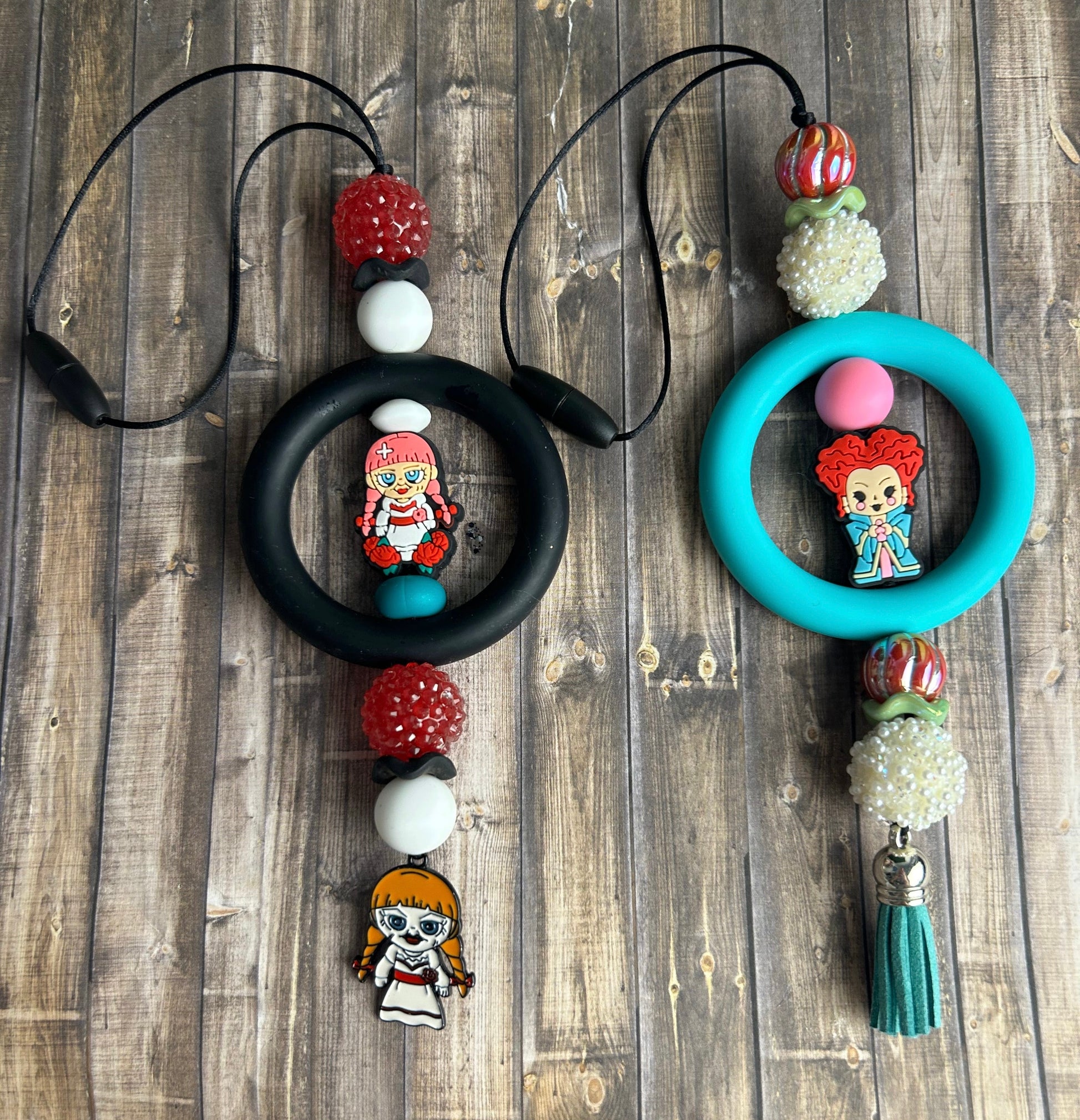 This is for ONE beaded car charm! These silicone beaded car charms can hang from your rear view mirror. Each car charm has a cord with a snap apart clasp that you can use to attach around the mirror.