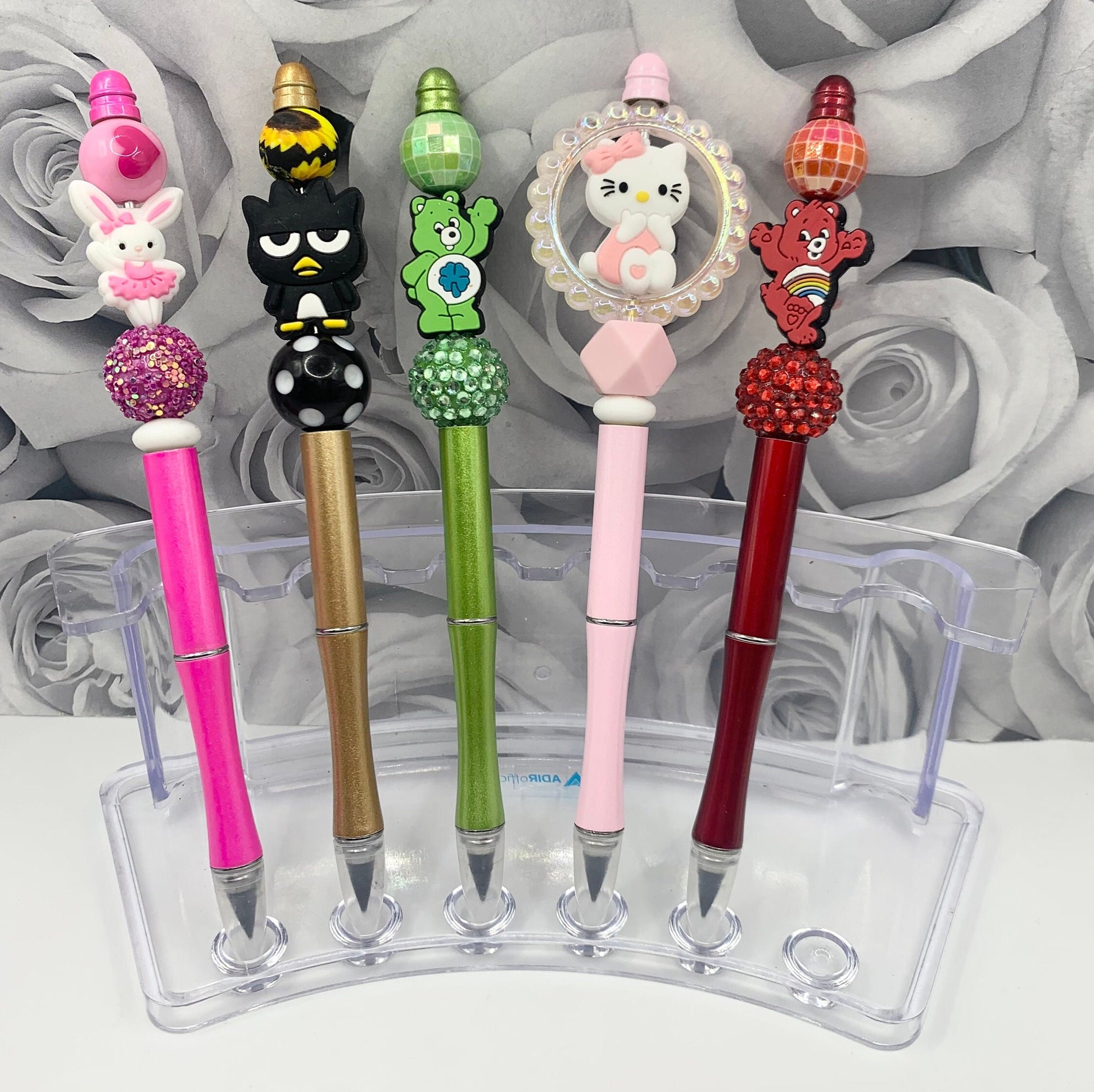 Pencils are lightweight metal with a variety of beads made from silicone or acrylic. All focal beads are silicone.