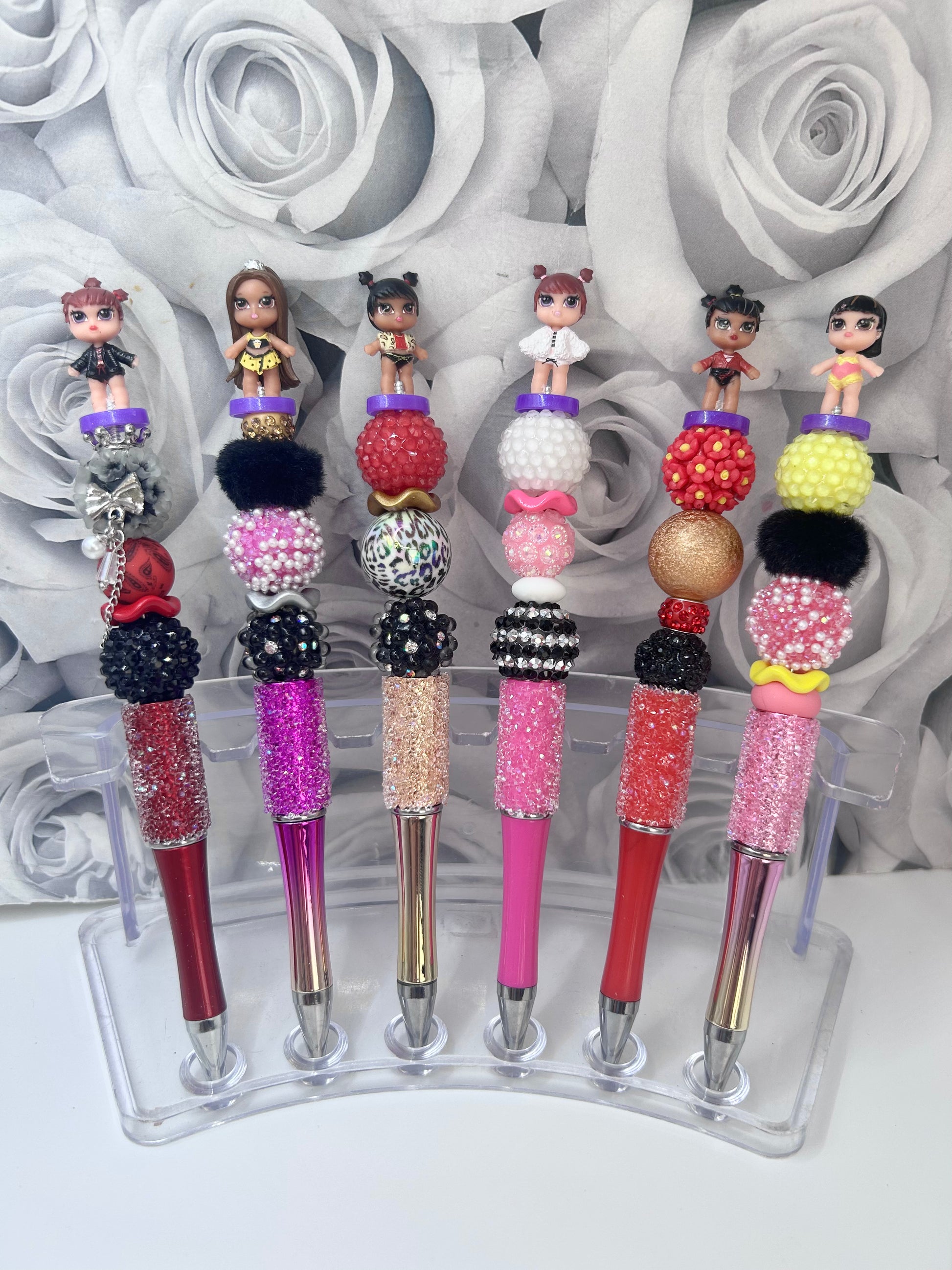 Pens are lightweight plastic with a variety of beads made from silicone or acrylic.